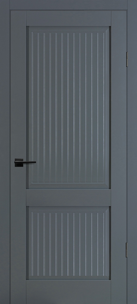 Полотно комплектуется объемной филенкой с фрезерованным рисунком "под рейку". В остекленных полотнах используется рифленное стекло с красивым прокатным узором в виде полос. Отлично смотрится в неоклассических и лофтовых интерьерах.