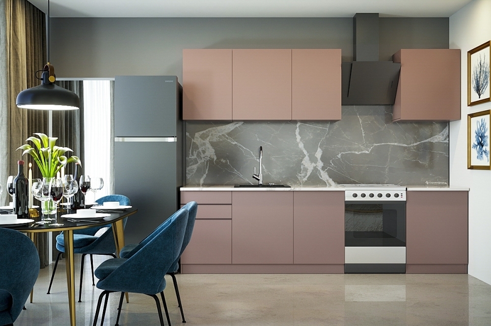 Ручки, столешница, стеновая панель, мойка, смеситель и бытовая техника продаются отдельно.